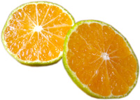 通常のハウスみかんは、果皮がオレンジで露地みかん(冬のみかん)と同じ果実ですが、グリーンハウスみかんは、